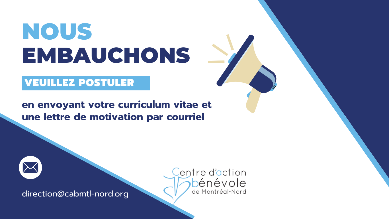 En cliquant sur « S’inscrire », vous acceptez de partager votre adresse courriel avec le Centre d’action bénévole de Montréal-Nord afin de recevoir l’infolettre de nos actualités et événements. Vous pouvez vous désabonner à tout moment à l’aide du lien correspondant disponible dans ces courriels.